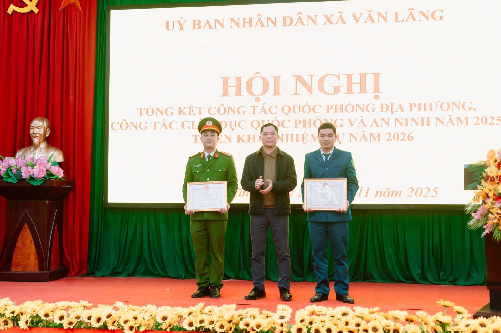 Dịp này, UBND xã Văn Lãng đã trao tặng giấy khen cho 02 tập thể và 06 cá nhân có thành tích trong công tác quốc phòng địa phương năm 2025./.