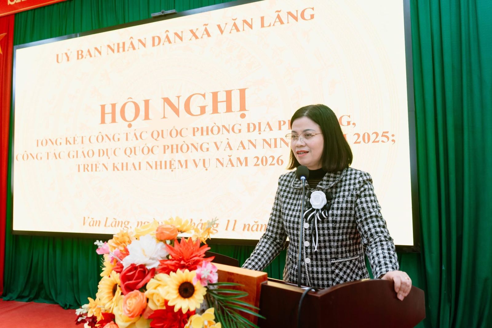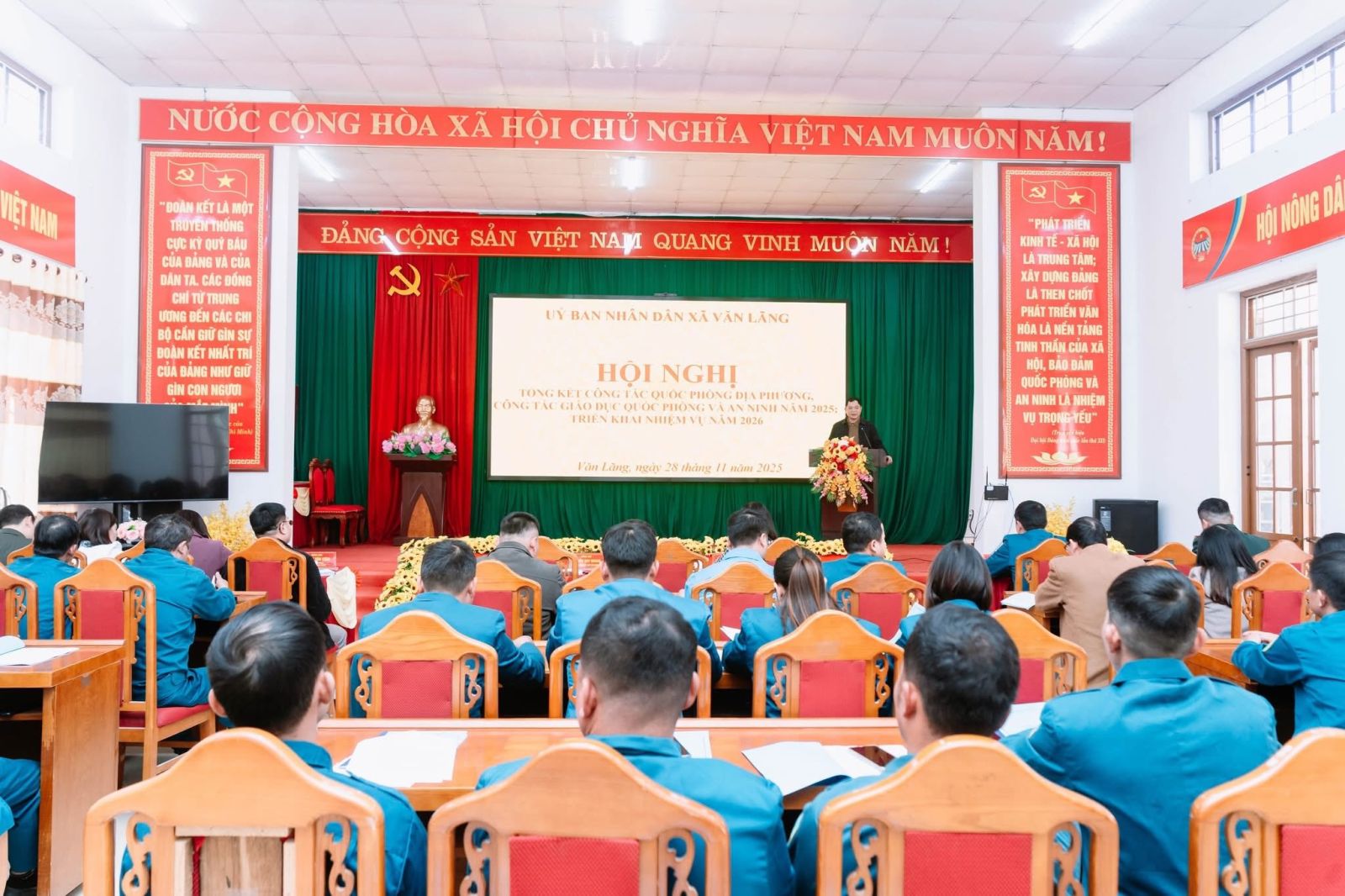 Chiều 28/11/ 2025, UBND xã Văn Lãng đã tổ chức Hội nghị tổng kết công tác quốc phòng địa phương, Công tác giáo dục quốc phòng và an ninh năm 2025, triển khai nhiệm vụ năm 2026. Dự hội nghị có đại diện Ban Chỉ huy phòng thủ Khu vực 1, các đồng chí trong Thường trực Đảng ủy, HĐND, UBND xã, đoàn thể cùng thôn đội trưởng, lực lượng dân trên địa bàn.