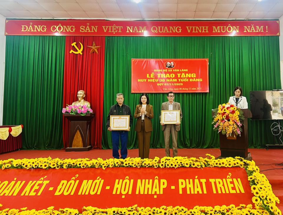 Chiều ngày 06/11/2025, Đảng ủy xã Văn Lãng, tỉnh Lạng Sơn tổ chức lễ trao tặng Huy hiệu 30 năm tuổi đảng cho 03 Đảng viên trên địa bàn.