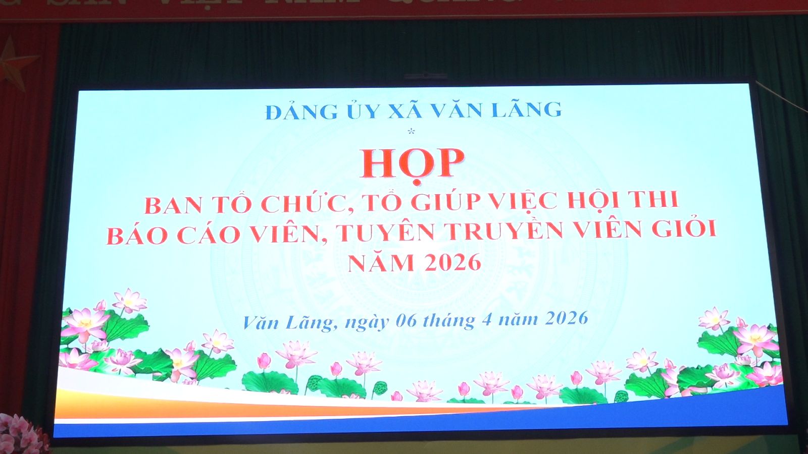 Chiều ngày 06/4/2026, Đảng ủy xã Văn Lãng tổ chức họp Ban Tổ chức, Tổ giúp việc Hội thi Báo cáo viên, Tuyên truyền viên giỏi năm 2026. Dự và chỉ đạo cuộc họp có đồng chí Chu Thanh Hữu, Phó Bí thư Thường trực Đảng ủy xã.