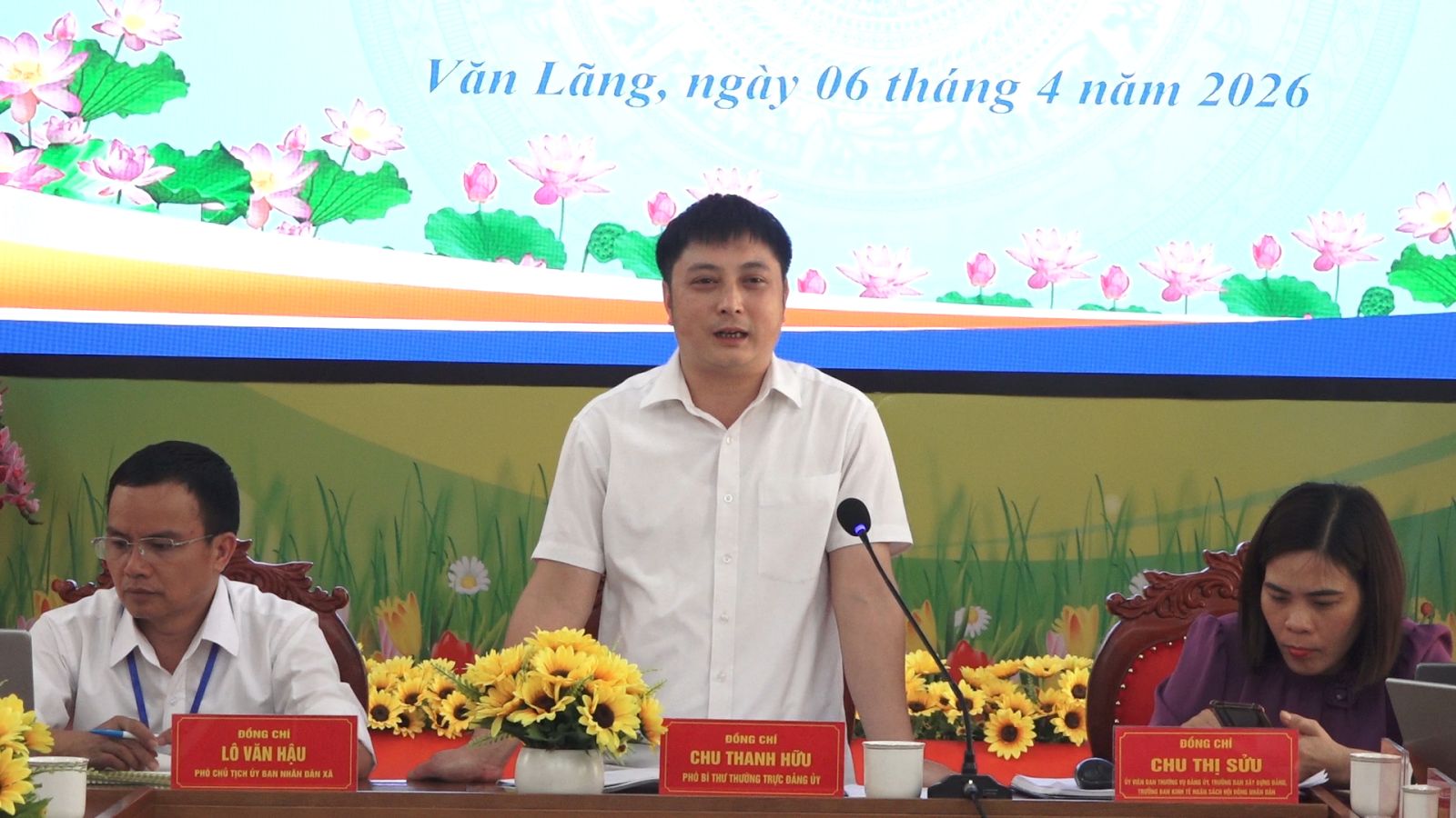 Chiều 06/4/2026, Đảng ủy xã Văn Lãng tổ chức Hội nghị giao ban công tác tuyên giáo và dân vận; Ban Chỉ đạo thực hiện dân chủ ở cơ sở; Ban Chỉ đạo 35 quý I năm 2026. Đồng chí Chu Thanh Hữu, Phó bí thư Thường trực Đảng uỷ xã dự và Chủ trì hội nghị.