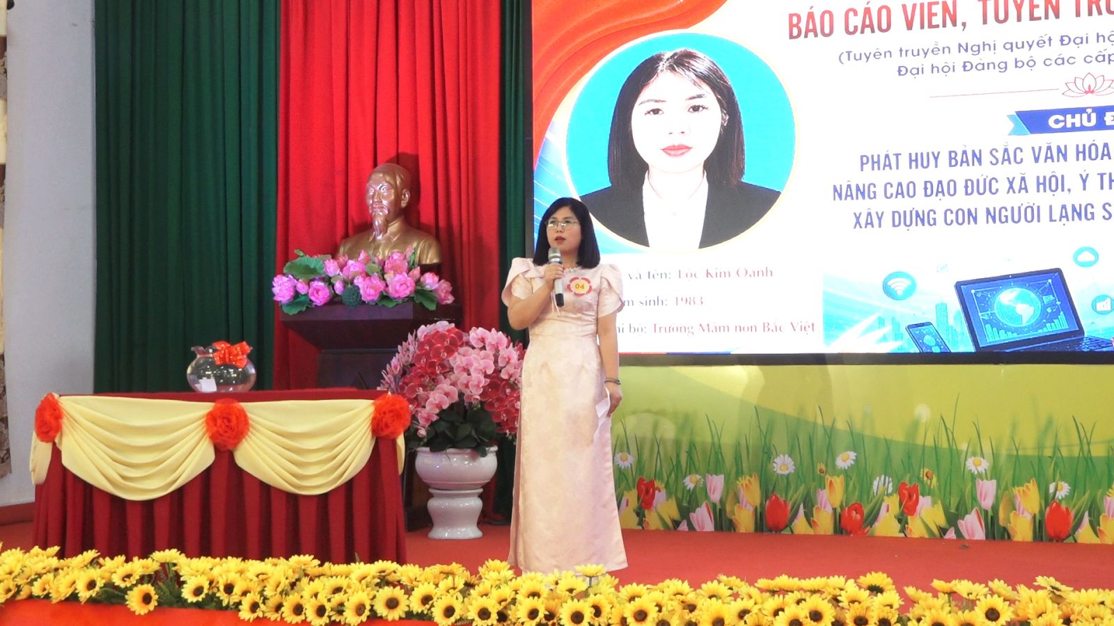 Tham gia hội thi có 12 thí sinh là báo cáo viên, tuyên truyền viên tiêu biểu đến từ các chi bộ trực thuộc. Các thí sinh trải qua 3 phần thi: Xây dựng đề cương, Thuyết trình và trả lời câu hỏi, tập trung vào các nội dung trọng tâm của nghị quyết, gắn với thực tiễn địa phương. Các thí sinh đã chuẩn bị kỹ lưỡng cho từng phần thi, từ xây dựng nội dung đến rèn luyện kỹ năng trình bày. Nhiều thí sinh đầu tư công phu, sáng tạo, thể hiện sự tự tin và tinh thần trách nhiệm cao.