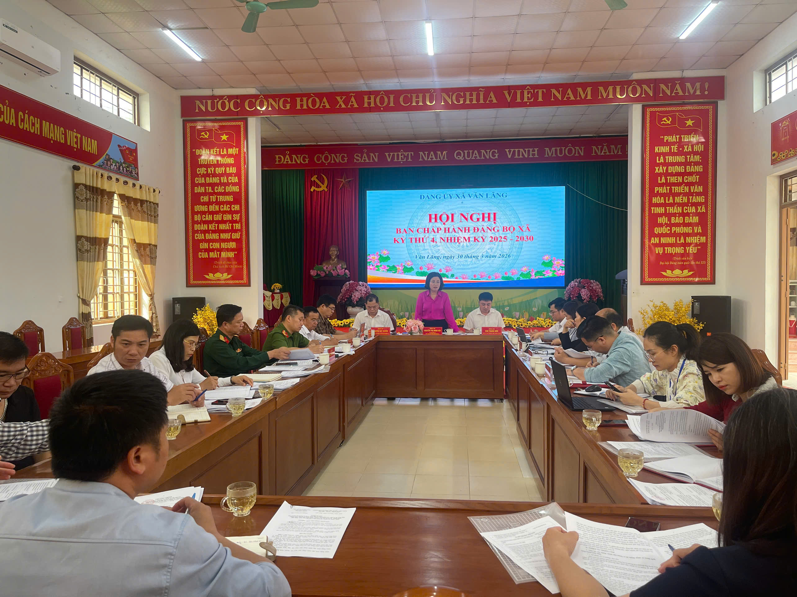 Ngày 30/3/2026, Đảng ủy xã Văn Lãng đã tổ chức Hội nghị Ban Chấp hành Đảng bộ xã kỳ thứ 4, nhiệm kỳ 2025-2030. Dự hội nghị có đồng chí Nguyễn Thị Minh Hải, Bí thư Đảng ủy, Chủ tịch HĐND xã, Đồng chí Nguyễn Duy Hoàng, Phó bí thư Đảng ủy, Chủ tịch UBND xã, Các đồng chí Thường trực Đảng ủy, Ủy viên Ban thường vụ Đảng ủy, Phó chủ tịch HĐND xã, Phó chủ tịch UBND xã, Chủ tịch Ủy ban MTTQ VN xã, Chánh văn phòng đảng ủy.