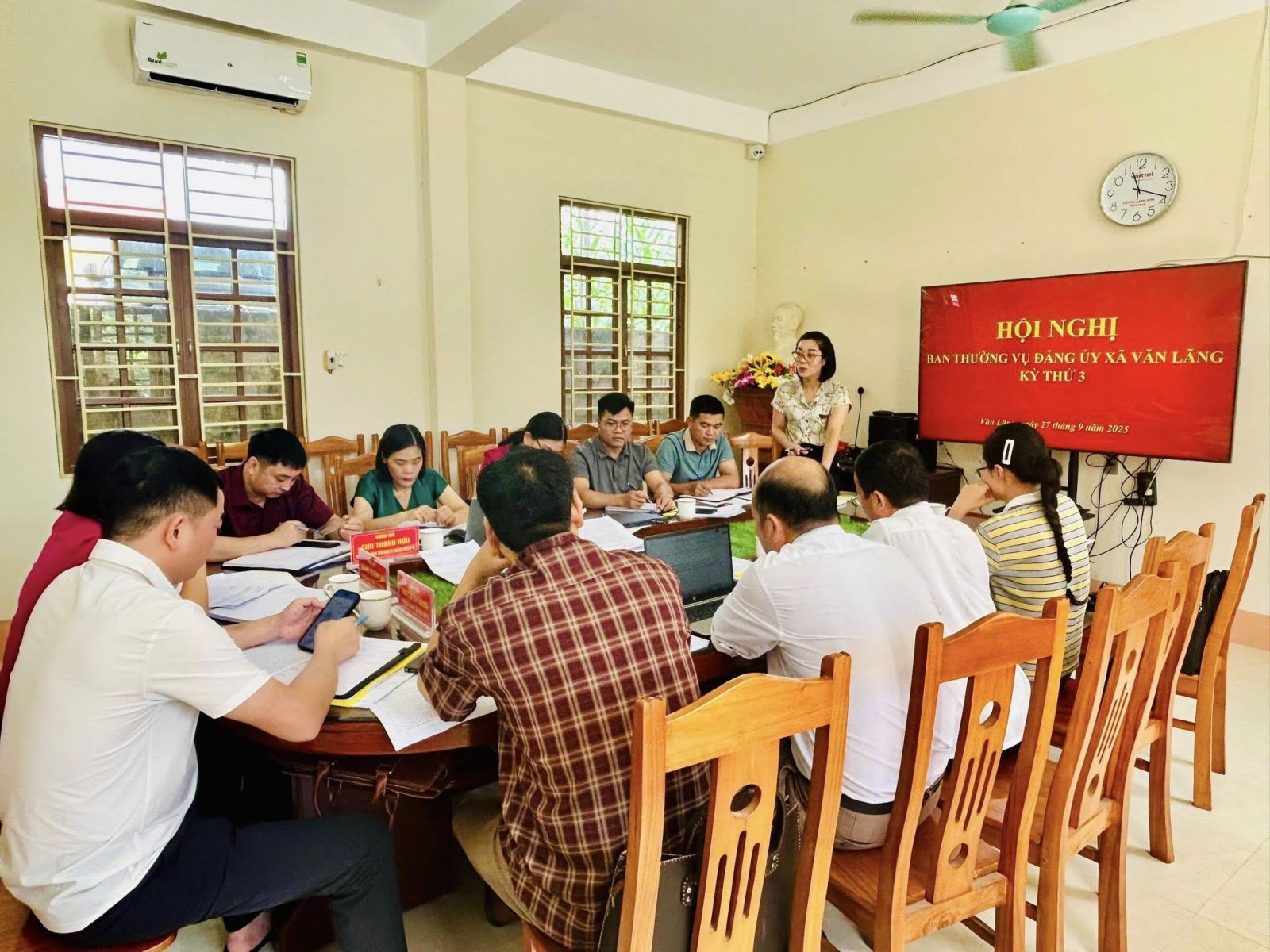 Sáng ngày 27 tháng 9 năm 2025, Đảng ủy xã Văn Lãng tổ chức hội nghị Ban thường vụ đảng ủy xã Văn Lãng thứ 3. Tham dự Hội nghị có đồng chí Nguyễn Thị Minh Hải, Bí thư Đảng ủy-Chủ tịch HĐND xã, chủ trị Hội nghị; Đồng chí Nguyễn Duy Hoàng, Phó bí thư Đảng ủy- Chủ tịch UBND xã; Các đồng chí trong BTV, BCH Đảng bộ xã.