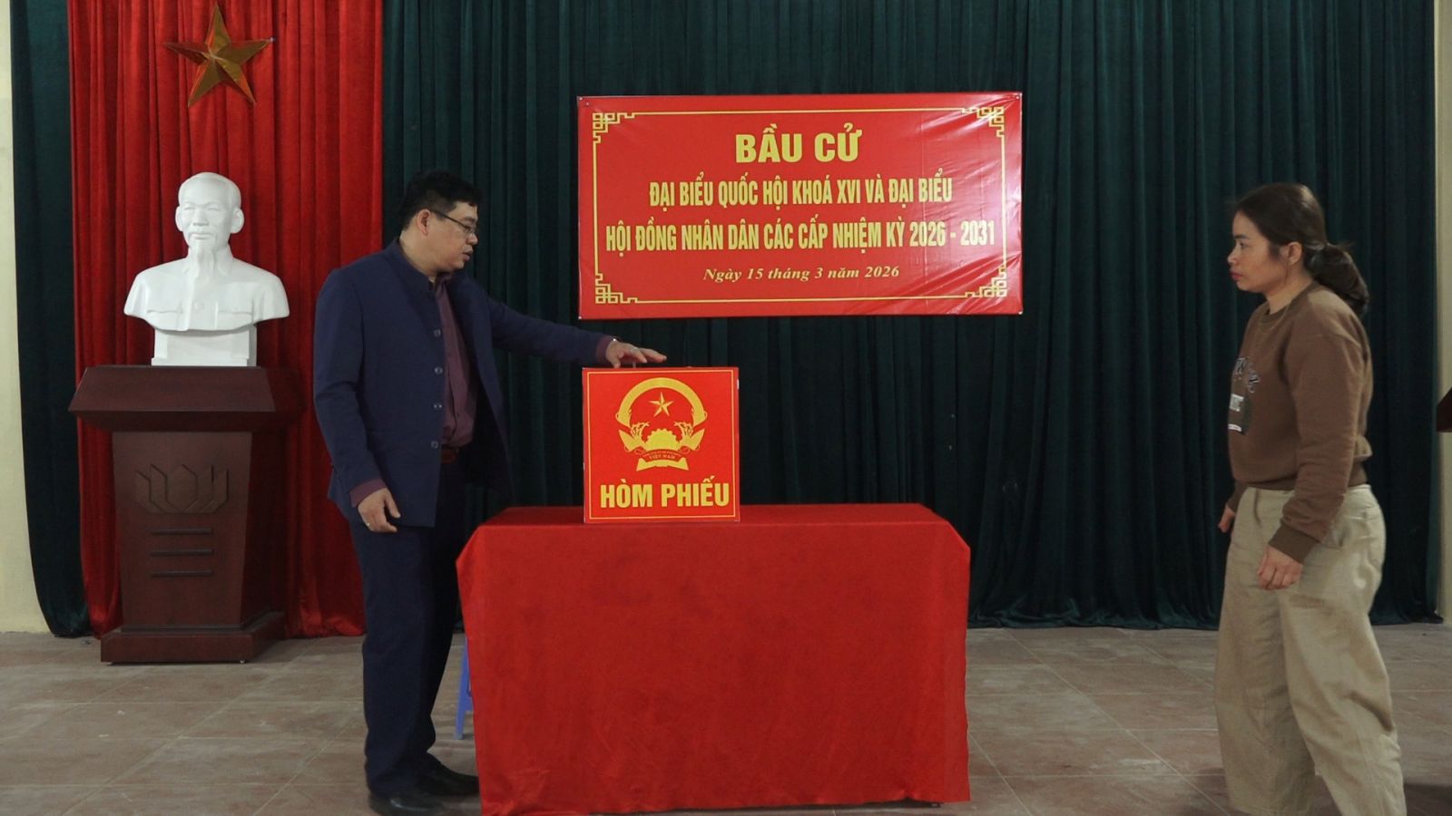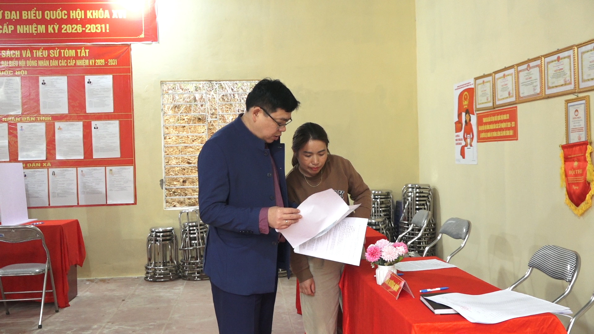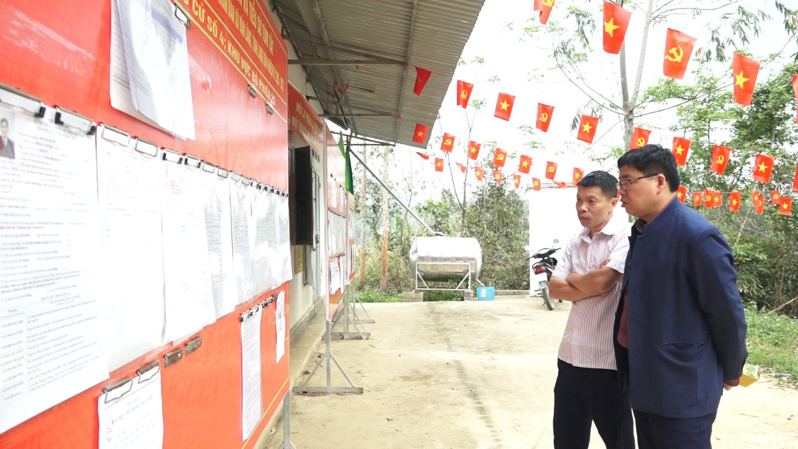 Tại các khu vực bỏ phiếu, đồng chí lãnh đạo xã đã trực tiếp kiểm tra việc chuẩn bị cơ sở vật chất phục vụ bầu cử như: công tác trang trí khánh tiết, bố trí khu vực bỏ phiếu, kê bàn ghế, hòm phiếu, niêm yết danh sách cử tri, danh sách ứng cử viên, cũng như việc vệ sinh môi trường khu vực bỏ phiếu.