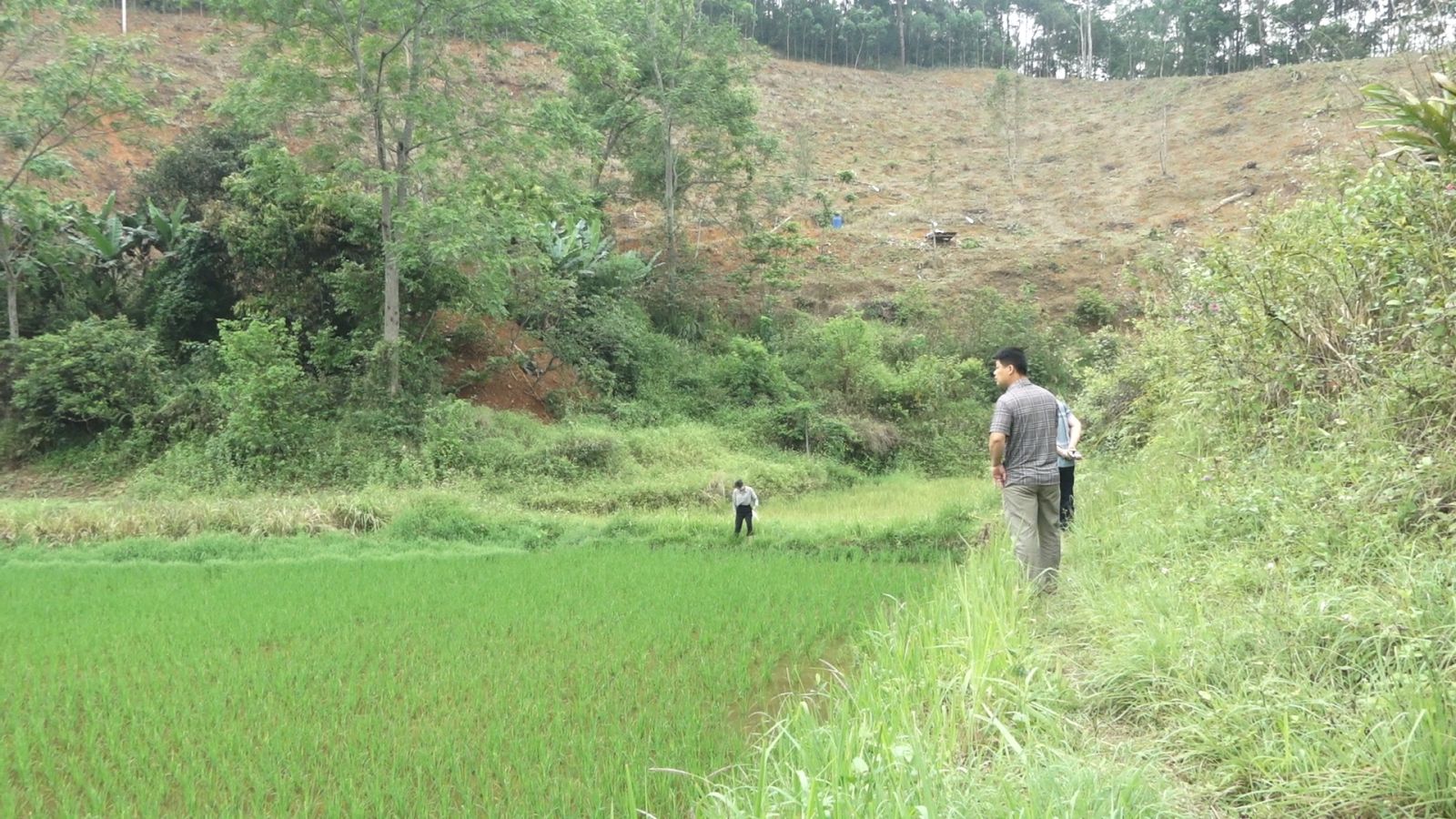 LÃNH ĐẠO XÃ VĂN LÃNG KIỂM TRA TÌNH HÌNH ỐC BƯƠU VÀNG GÂY HẠI LÚA XUÂN