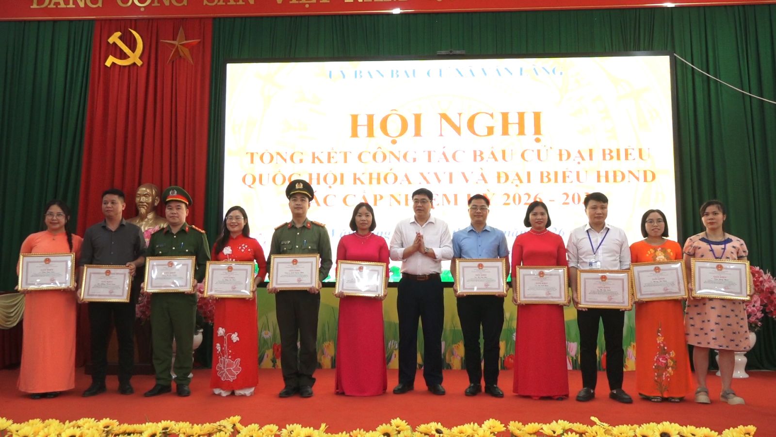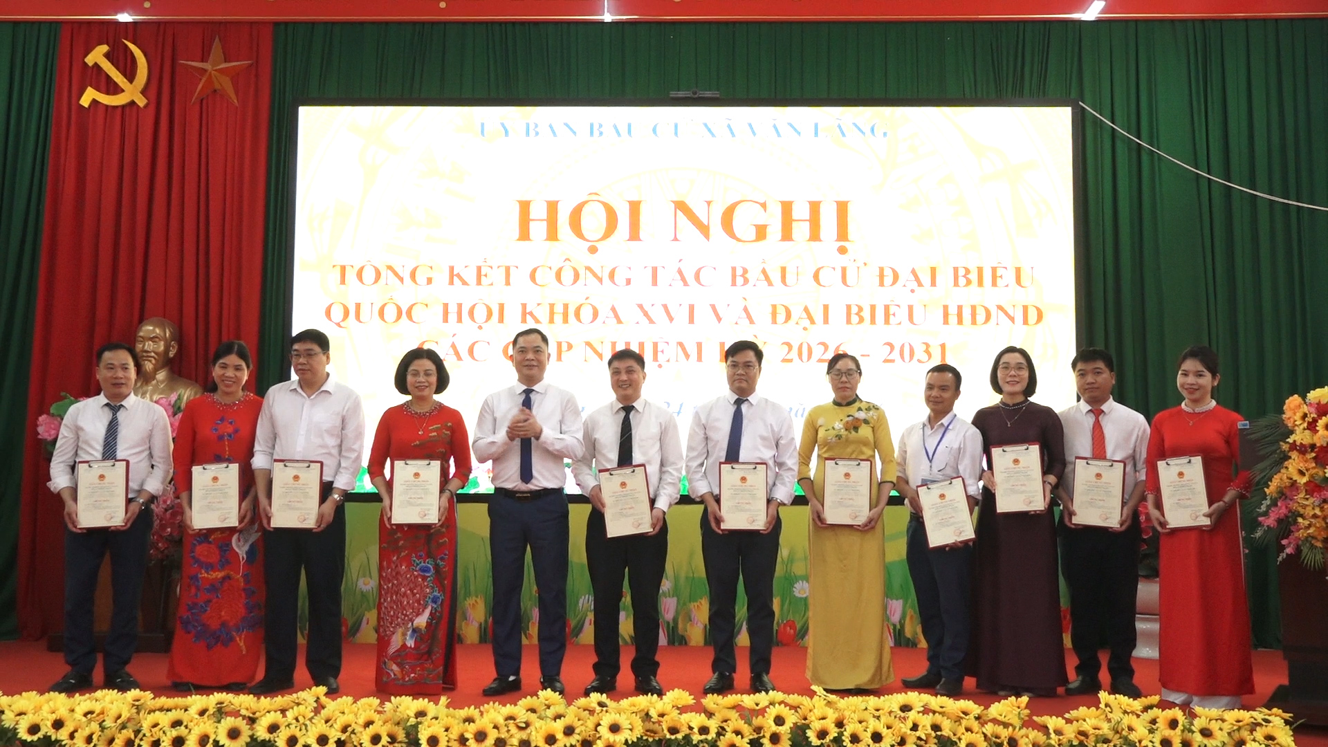 Chiều 24/3/2026, Ủy ban bầu cử Văn Lãng đã tổ chức Hội nghị tổng kết công tác bầu cử đại biểu Quốc hội khóa XVI và đại biểu HĐND các cấp nhiệm kỳ 2026–2031. Dự hội nghị có đồng chí Nguyễn Thị Minh Hải, Bí thư Đảng ủy, Chủ tịch HĐND xã, Đồng chí Nguyễn Duy Hoàng, Phó Bí thư Đảng ủy, Chủ tịch UBND xã, các đồng chí Lanh đạo Đảng ủy, HĐND, UBND, UBMTTQ VN xã; Ban Chỉ đạo Bầu cử xã; Ủy ban Bầu cử xã; Đại diện các Ban Bầu cử xã; Tổ trưởng, Thư ký 30 tổ bầu cử; Các Thành viên tổ giúp việc Ủy ban Bầu cử xã; Các đại biểu HĐND xã nhiệm kỳ 2021-2026; Đại diện lãnh đạo các cơ quan, ban ngành, đoàn thể xã; Bí thư chi bộ, Trưởng các thôn trên địa bàn xã; Các tập thể, cá nhân được khen thưởng
