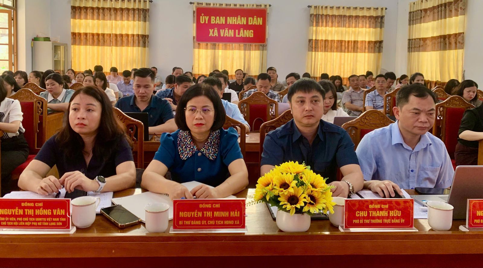 Tại điểm cầu xã Văn Lãng, dự hội nghị có các đồng chí: Nguyễn Thị Hồng Vân, Tỉnh ủy viên, Phó Chủ tịch UBMTTQ VN tỉnh, Chủ tịch Hội LHPN tỉnh; đồng chí Nguyễn Thị Minh Hải, Bí thư Đảng ủy, Chủ tịch HĐND xã; đồng chí Chu Thanh Hữu, Phó Bí thư Thường trực Đảng ủy; đồng chí Nguyễn Duy Hoàng, Phó bí thư Đảng ủy, Chủ tịch UBND xã; Các đồng chí Uỷ viên BTV Đảng ủy; các đồng chí Uỷ viên BCH Đảng bộ xã; Các đồng chí Trưởng, Phó các phòng, ban, MTTQ, các tổ chức chính trị -xã hội, đơn vị sự nghiệp cấp xã, toàn thể cán bộ, đảng viên các cơ quan quan Đảng ủy, HĐND, UBND,Ủy ban MTTQ Vn xã, Trung tâm dịch vụ Công ích xã; Bí thư, Phó bí thư chi bộ, Trưởng thôn, Phó trưởng thôn; Hiệu trưởng, Phó hiệu trưởng các trường học trên địa bàn xã.