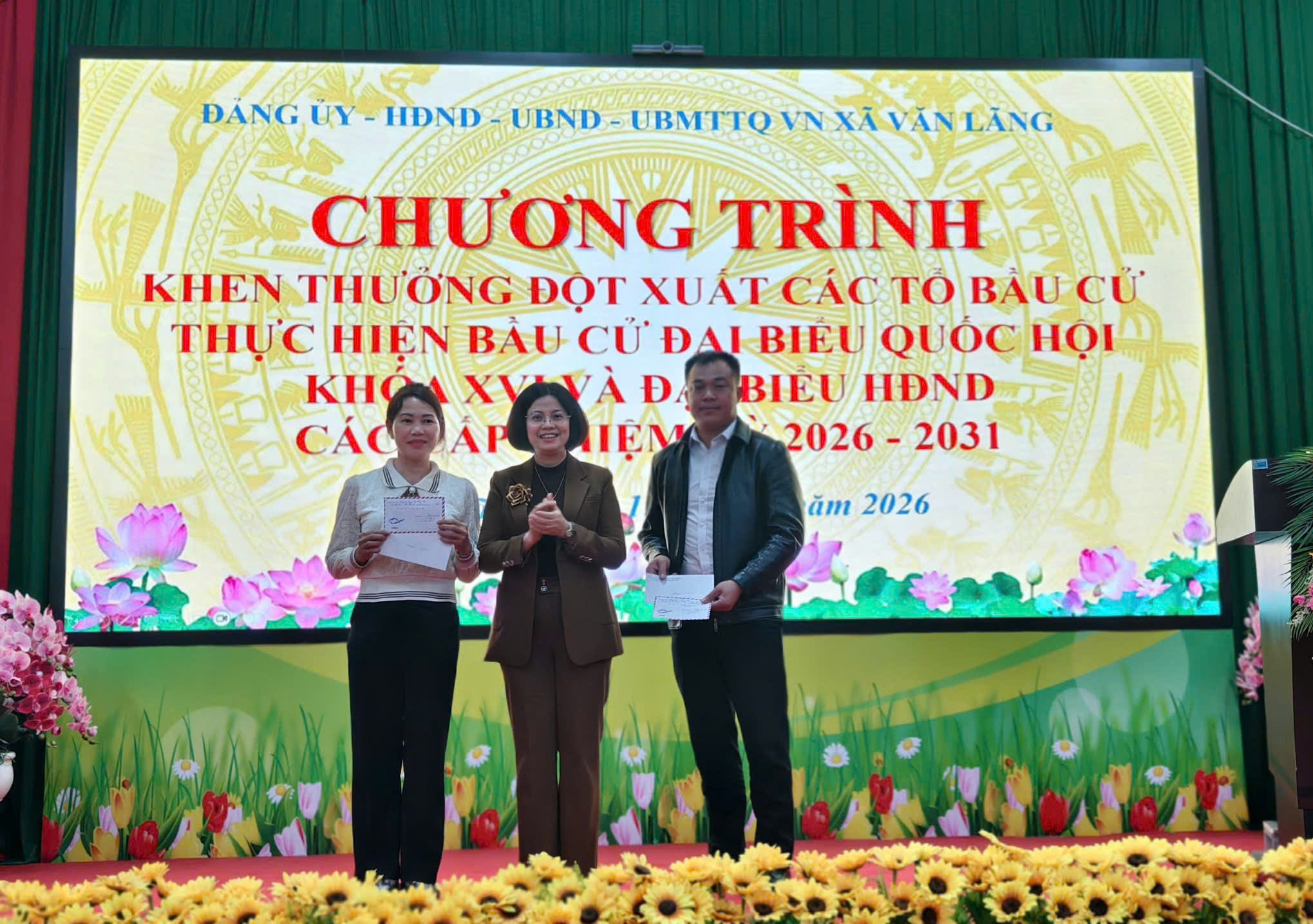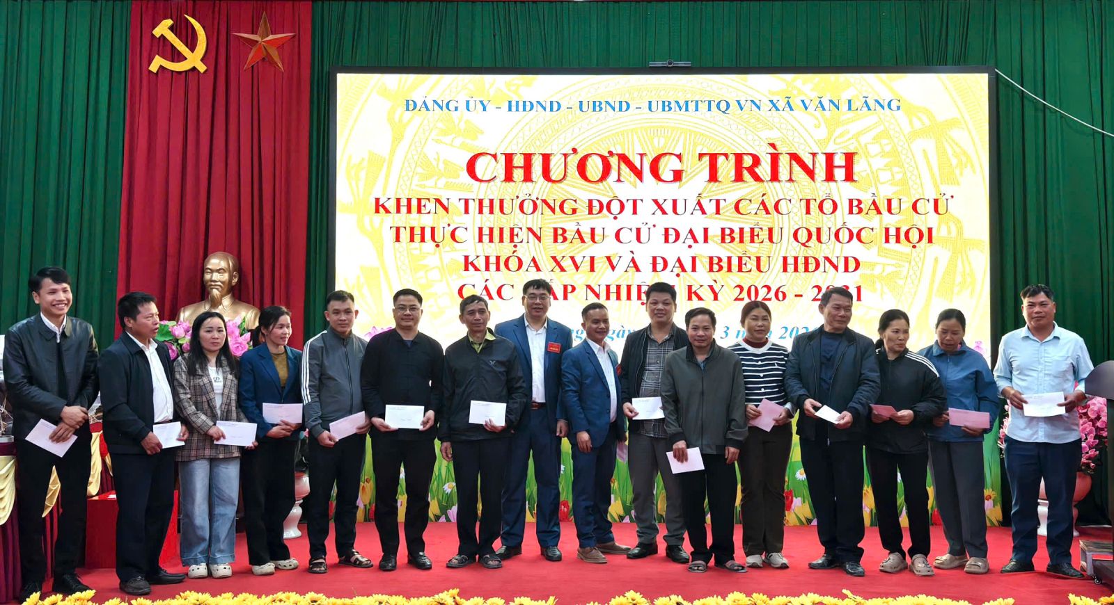 XÃ VĂN LÃNG KHEN THƯỞNG ĐỘT XUẤT CÁC TỔ BẦU CỬ ĐẠI BIỂU QUỐC HỘI KHÓA XVI VÀ ĐẠI BIỂU HĐND CÁC CẤP NHIỆM KỲ 2026- 2031