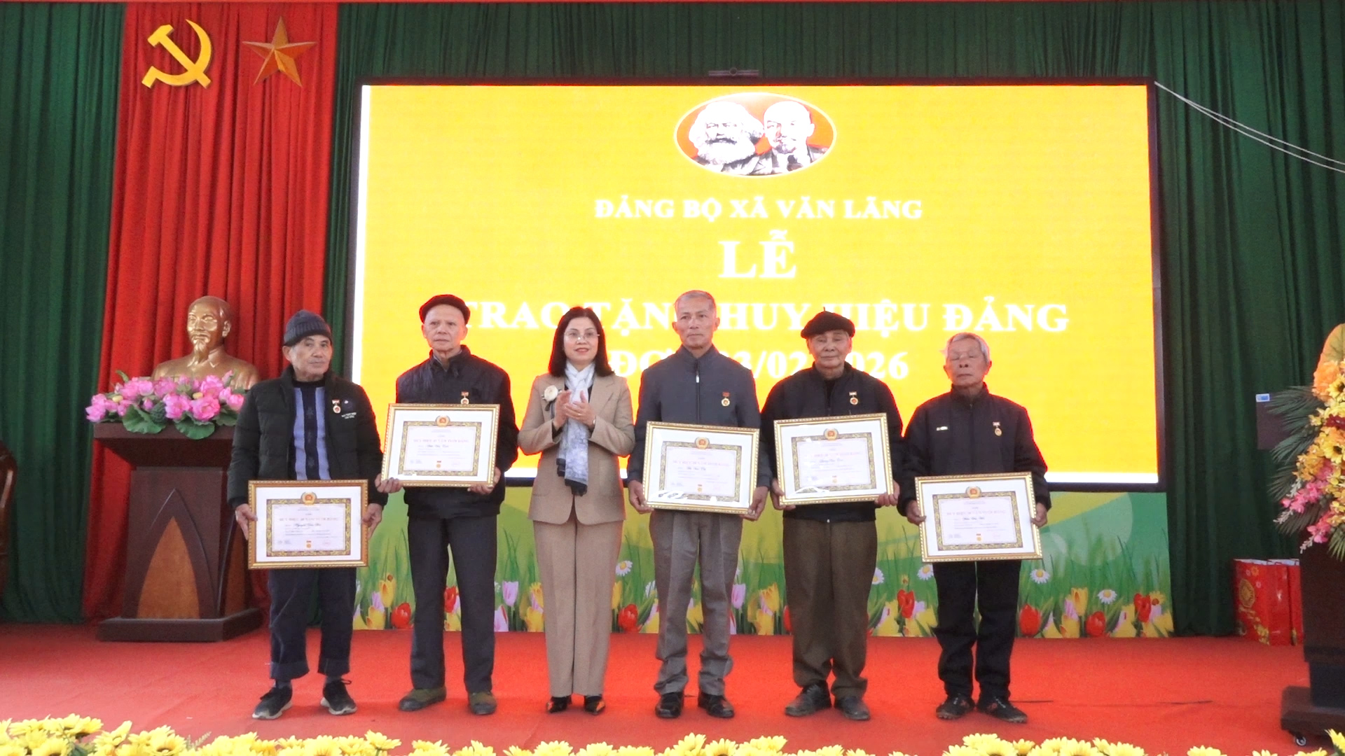 Tại buổi lễ, đồng chí Nguyễn Thị Minh Hải, Bí thư Đảng ủy, Chủ tịch HĐND xã Văn Lãng đã trao Huy hiệu Đảng và gửi lời chúc mừng tới các đồng chí đảng viên được nhận Huy hiệu, ghi nhận những đóng góp to lớn của các đồng chí trong suốt quá trình công tác, rèn luyện và cống hiến cho sự nghiệp cách mạng của Đảng, của dân tộc và địa phương. Đồng thời mong muốn các đồng chí tiếp tục phát huy phẩm chất cách mạng, nêu gương sáng cho thế hệ trẻ noi theo, góp phần xây dựng Đảng bộ xã ngày càng trong sạch, vững mạnh./.