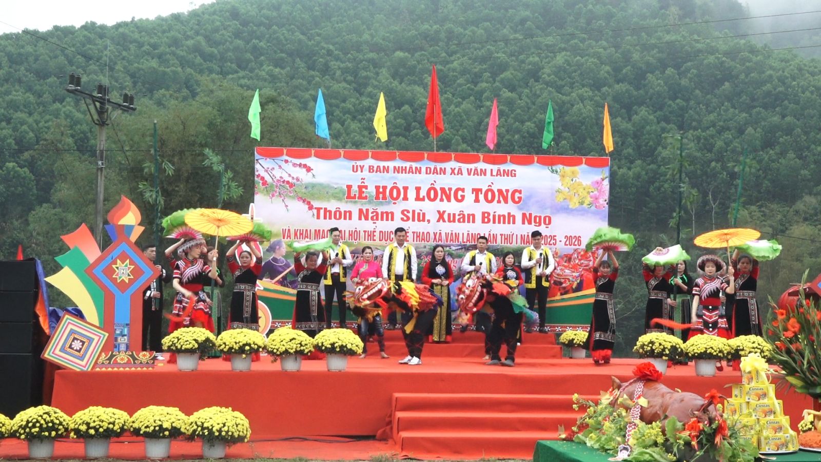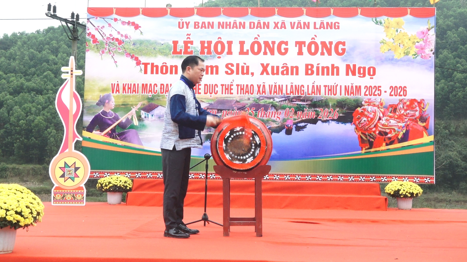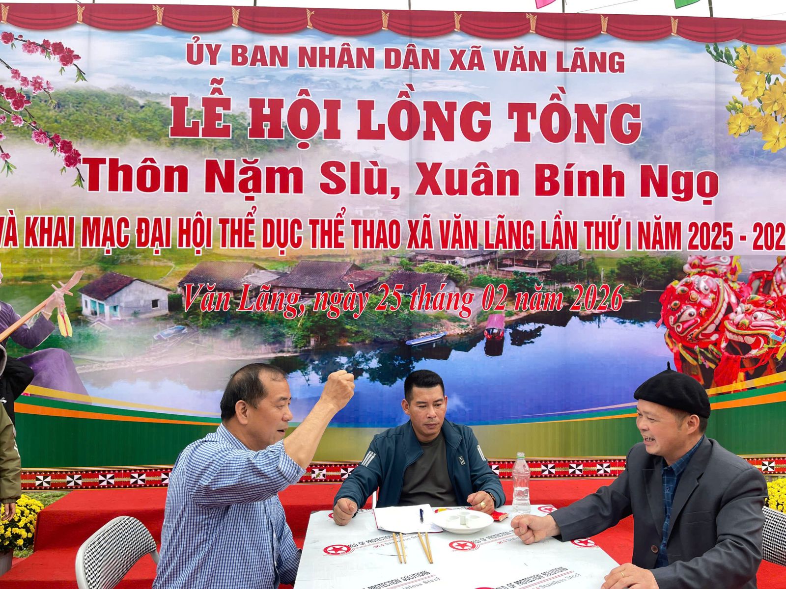 Sáng ngày 25/02/2026, ( Tức ngày 09 tháng giêng năm Bính Ngọ), UBND xã Văn Lãng đã long trọng tổ chức Lễ hội Lồng Tồng, thôn Nặm SLù, Xuân Bính Ngọ năm 2026 và Khai mạc Đại hội Thể dục Thể thao xã Văn Lãng lần thứ I, giai đoạn 2025 – 2026. Đây là hoạt động văn hóa, thể thao truyền thống nhằm cầu cho một năm mưa thuận gió hòa, mùa màng bội thu, đời sống Nhân dân ấm no, hạnh phúc. Tham dự lễ hội có đồng chí Chu Thanh Hữu, Phó bí thư Thường trực Đảng ủy, đồng chí Nguyễn Duy Hoàng, Phó Bí thư Đảng ủy, Chủ tịch UBND xã, đồng chí Lô Văn Hậu, Phó chủ tịch UBND xã, Trưởng Ban tổ chức Lễ hội xuân, các đồng chí lãnh đạo Đảng ủy, HĐND, UBND, UBMTTQ VN xã Văn Lãng, Hội Hoan, Thụy Hùng, Na Sầm, lãnh đạo các cơ quan, ban, ngành, lực lượng vũ trang, các đơn vị trường, các Doanh nghiệp và đông đảo bà con nhân dân, du khách gần xa.