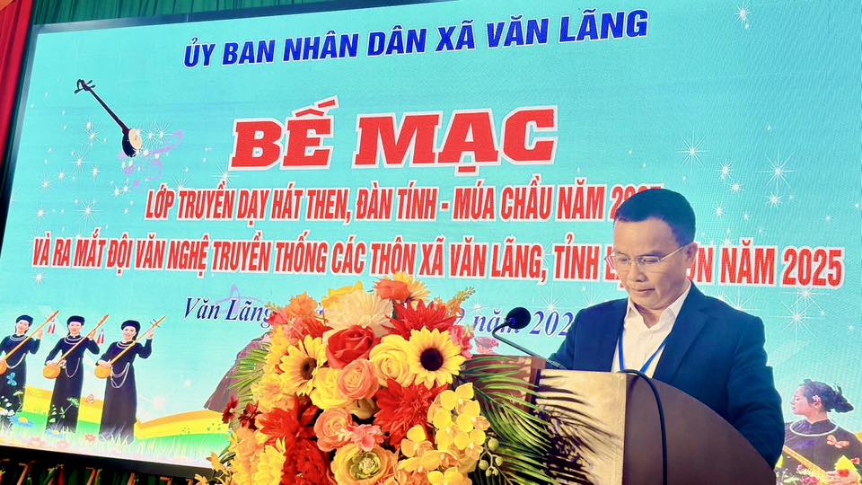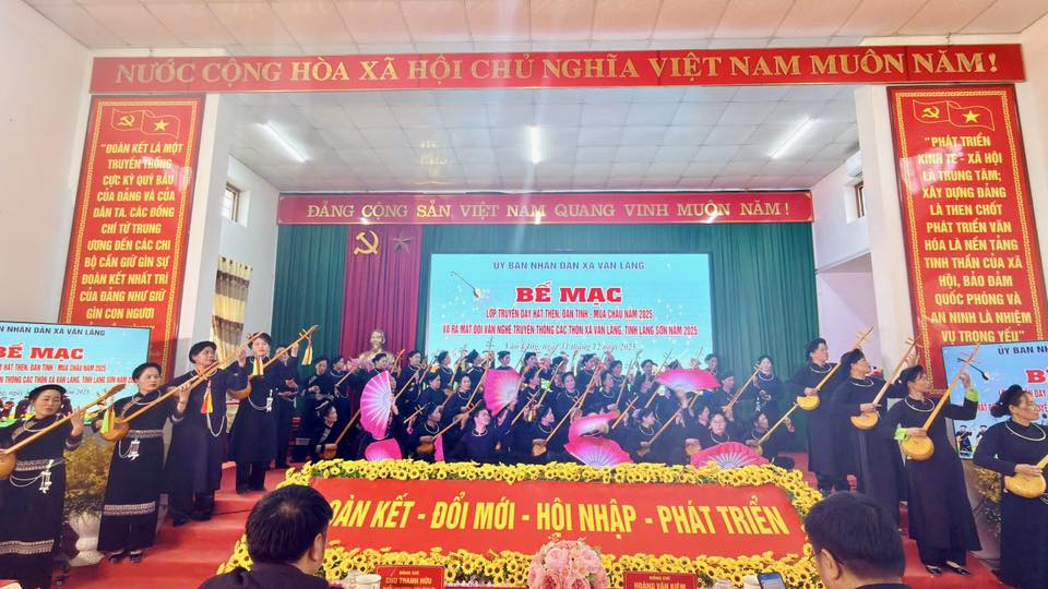 Chiều ngày 31/122025, Ủy ban nhân dân xã Văn Lãng tổ chức Bế giảng lớp truyền dạy hát then, đàn tính, múa chầu năm 2025 và ra mắt Đội văn nghệ truyền thống các thôn Bản Gioòng, Khun Roọc, Kéo Van xã Văn Lãng năm 2025.